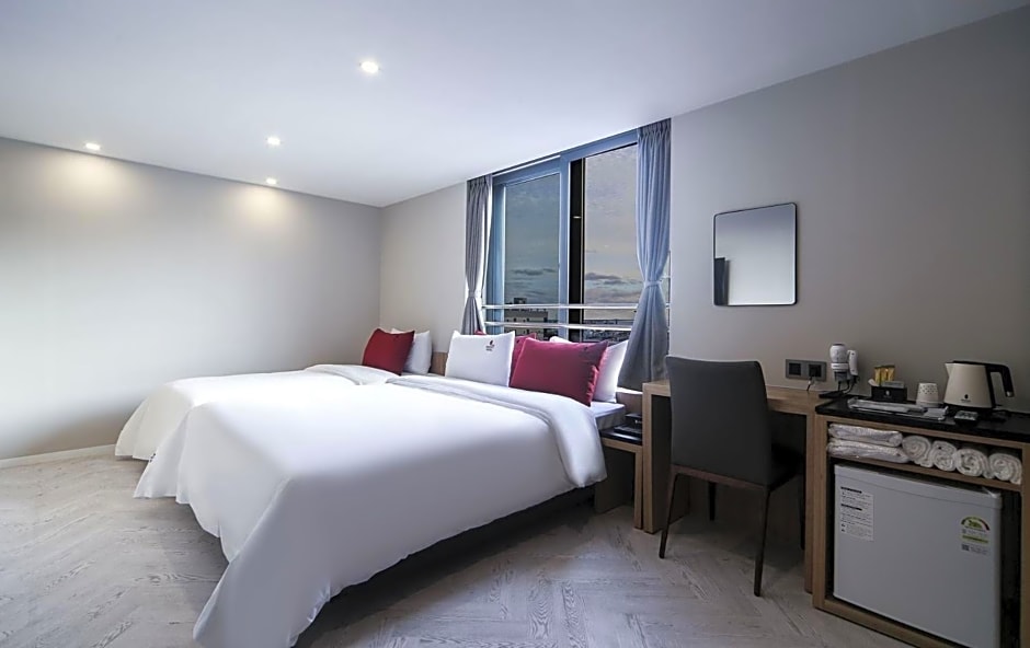 Offering bathrobes, this twin room includes a private bathroom with a shower, a bidet and a hairdryer. The air-conditioned twin room offers a flat-screen TV with cable channels, a private entrance, soundproof walls, a tea and coffee maker as well as city views. The unit has 2 beds.